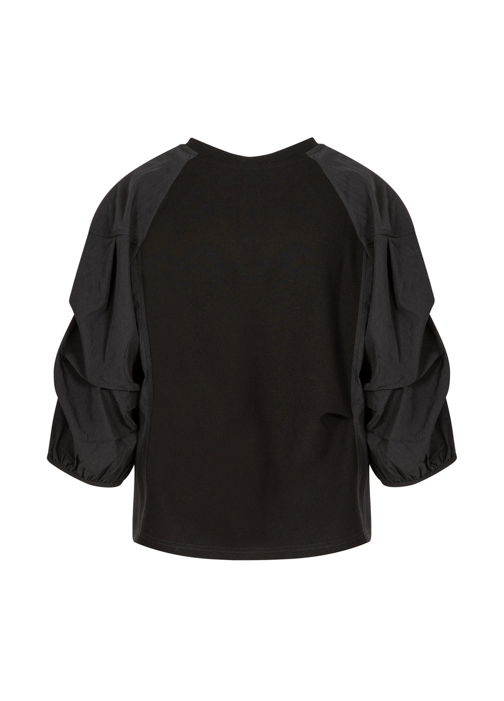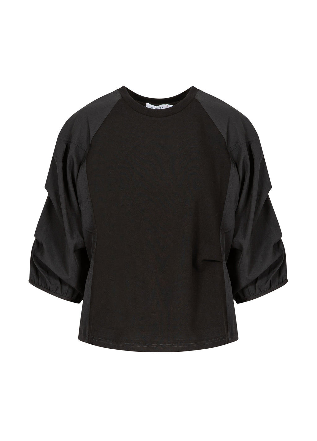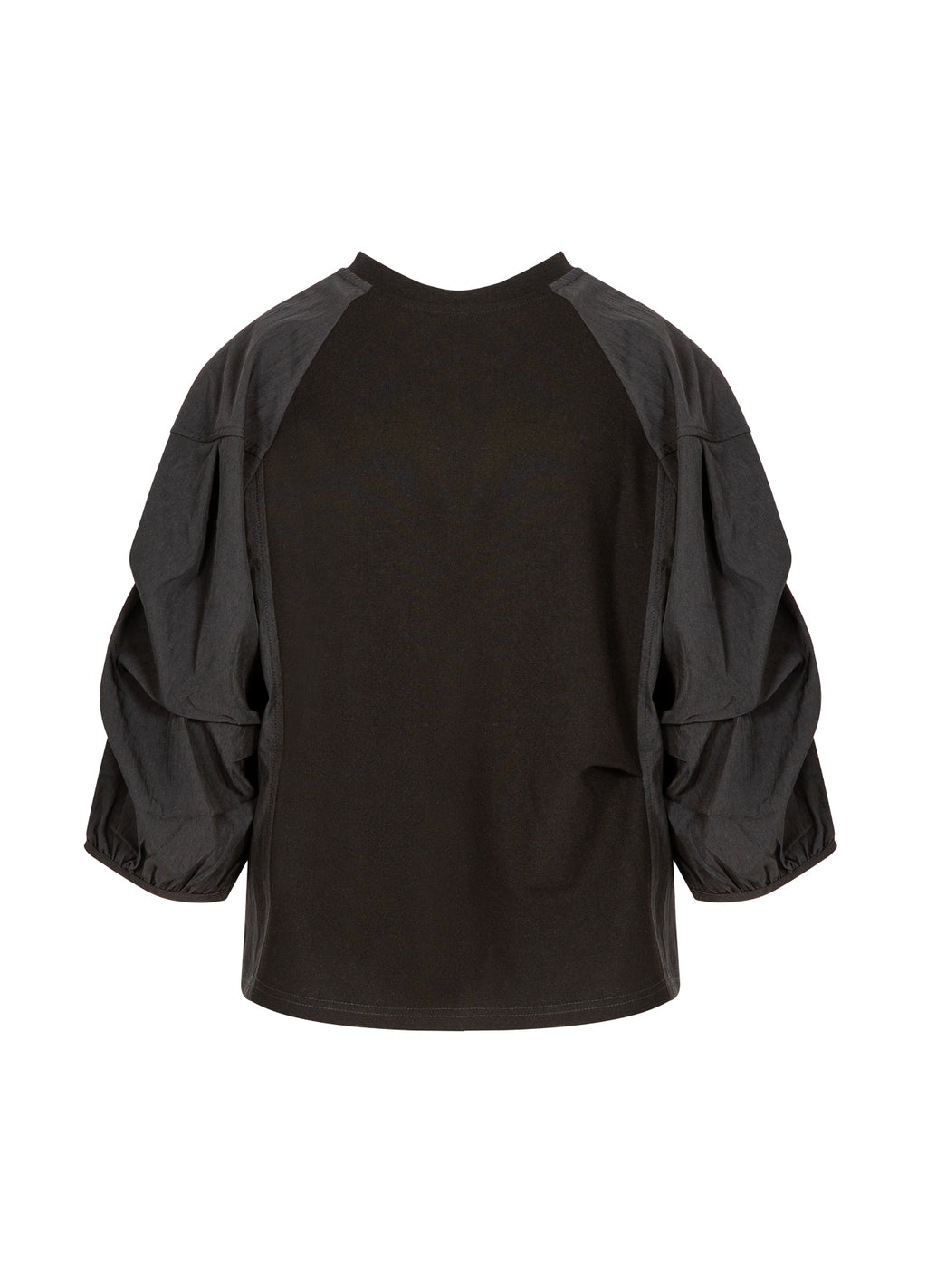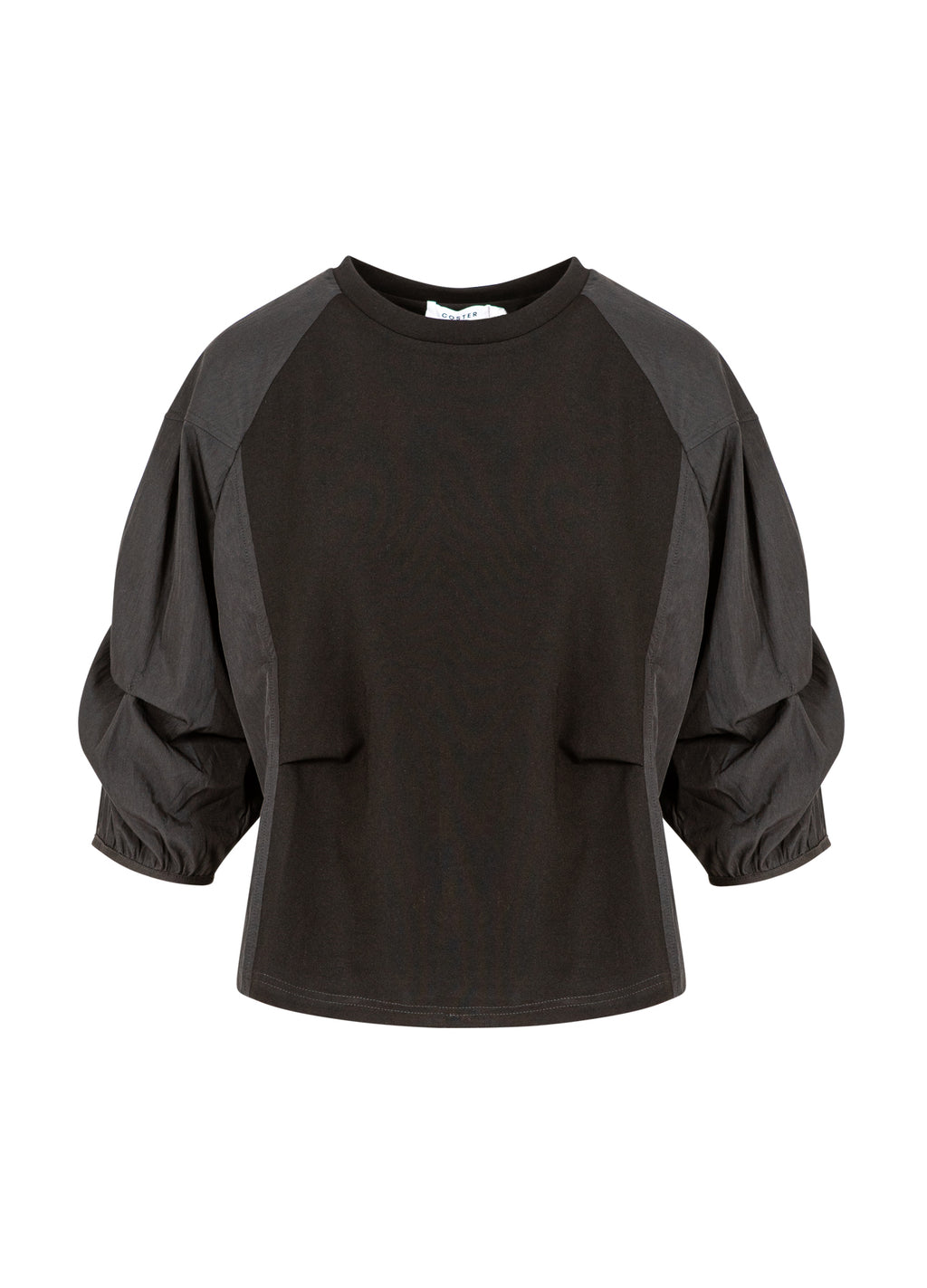 Quality: Knittted part: Viscose 30% polyamide 26% polyester 36% elastane 8%. Woven part: Polyester 71% polyamide 29%