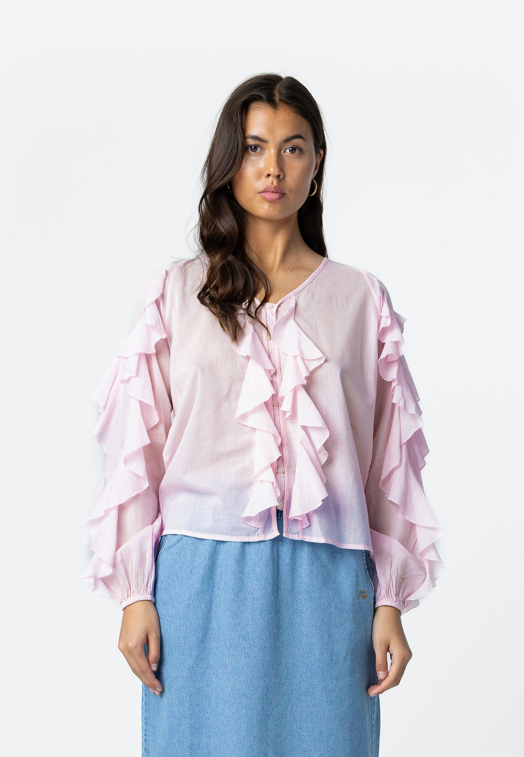 BLOUSE WITH RUFFLED SLEEVES