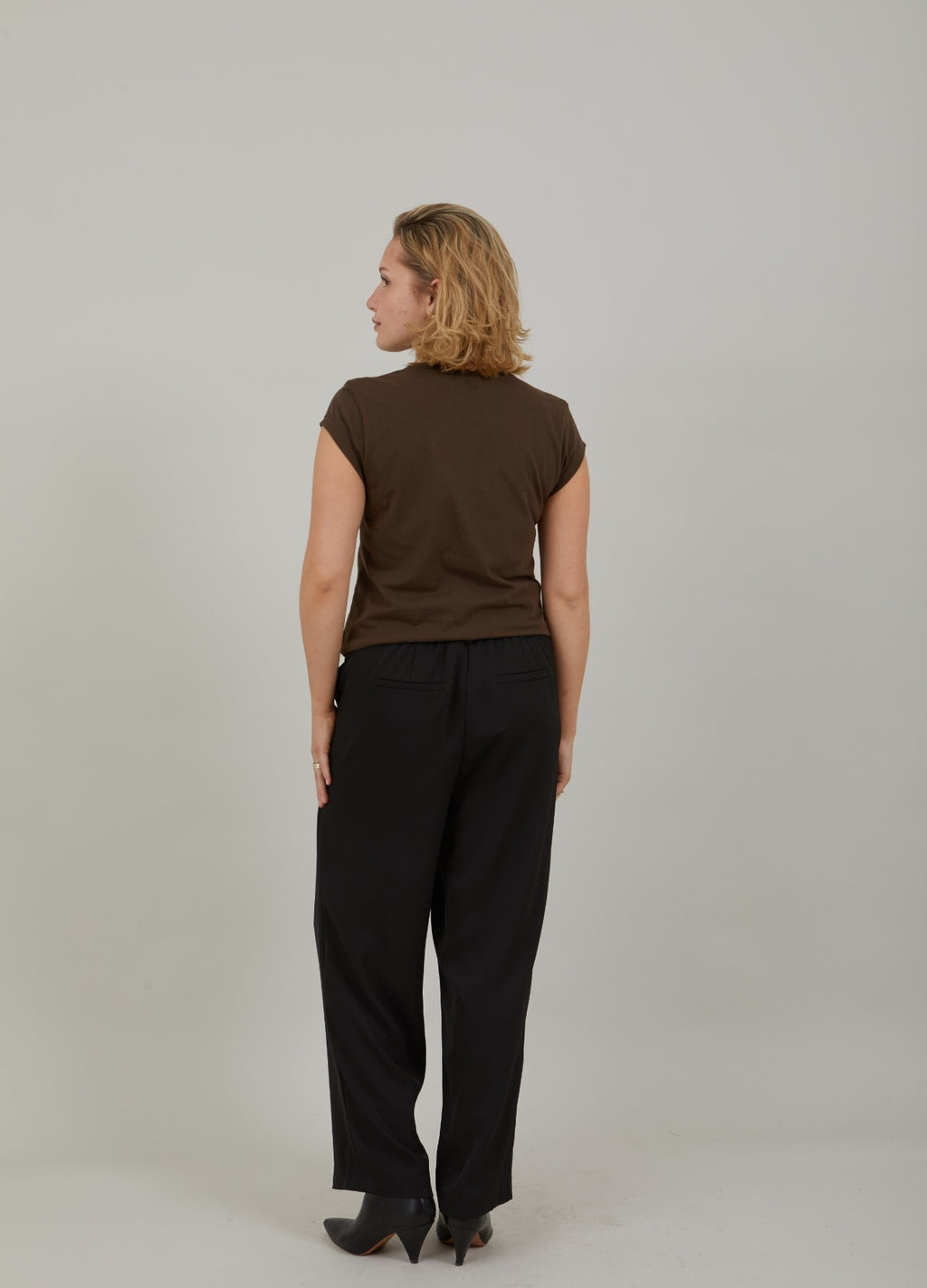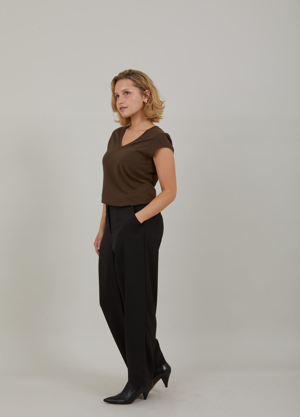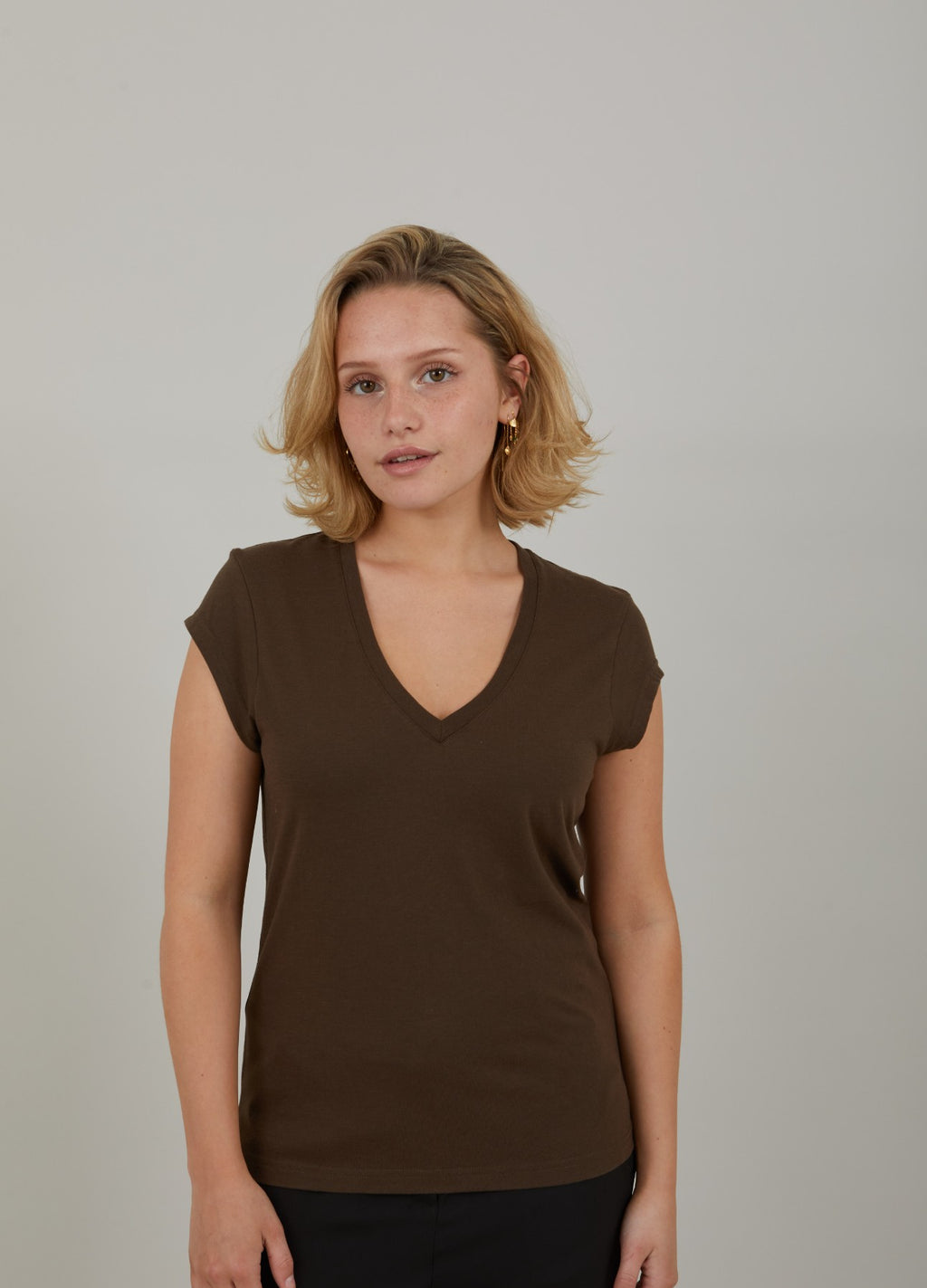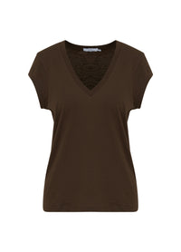 T-shirt in a sleek silhouette with dropped shoulders and a V-neck. Great basic t-shirt and perfect with bold or subtle, coloured pants, shorts or a printed skirt..