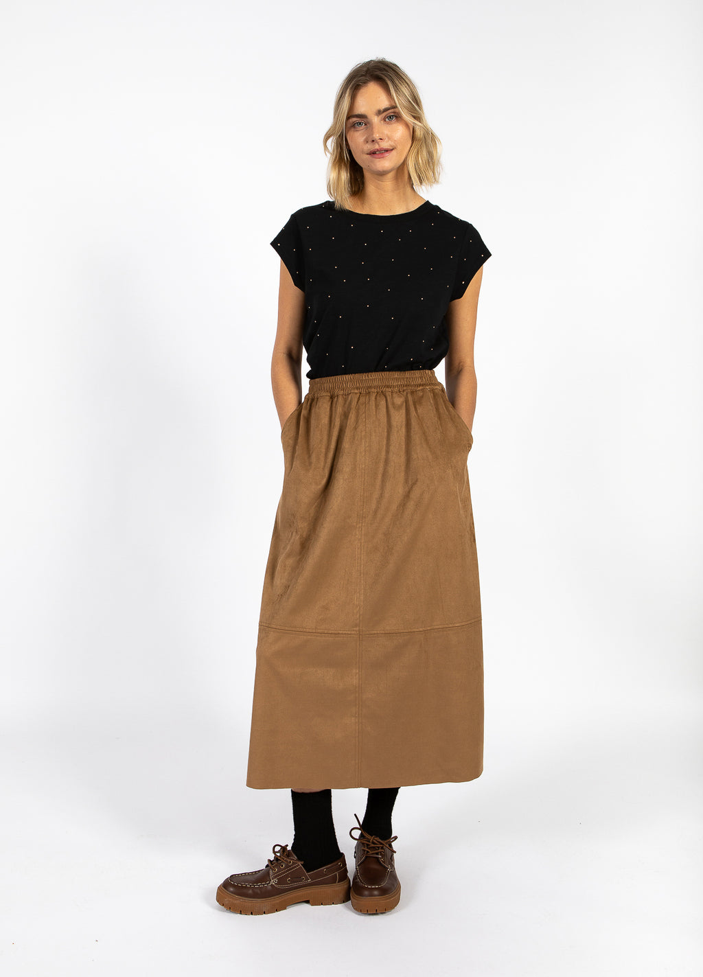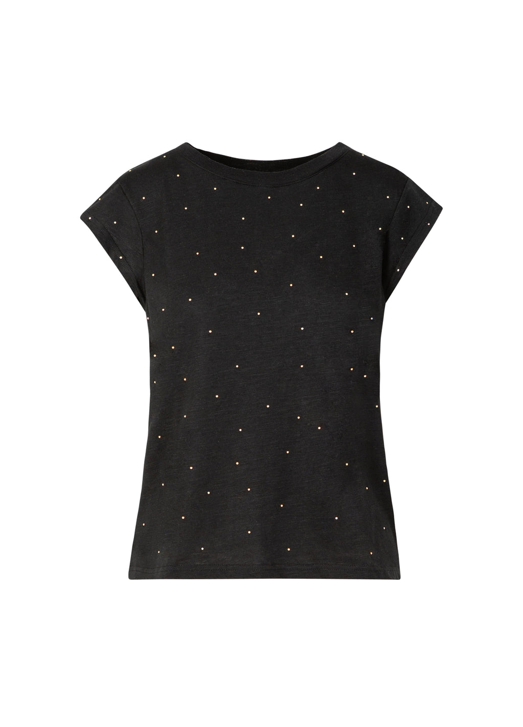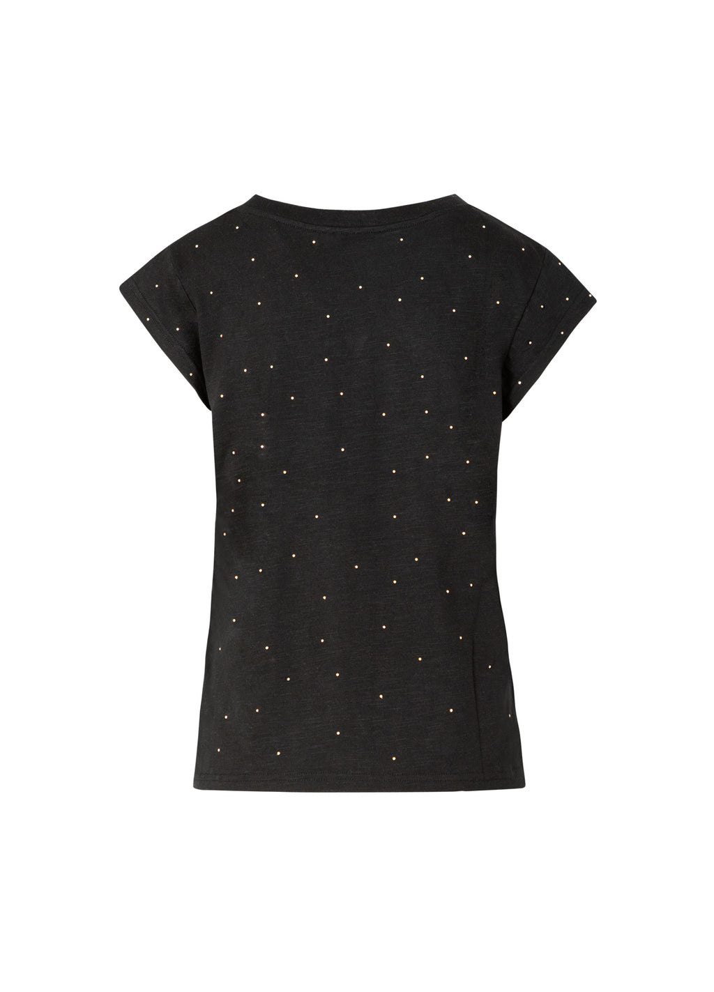 The model is 176 cm tall and wears size S. She measures 81 cm around the chest, 63 cm around the waist, and 95 cm around the hips.