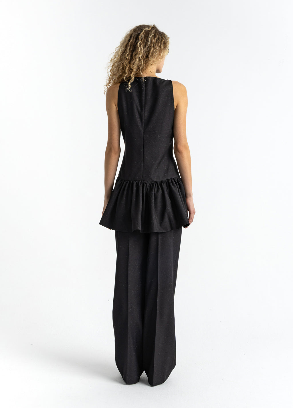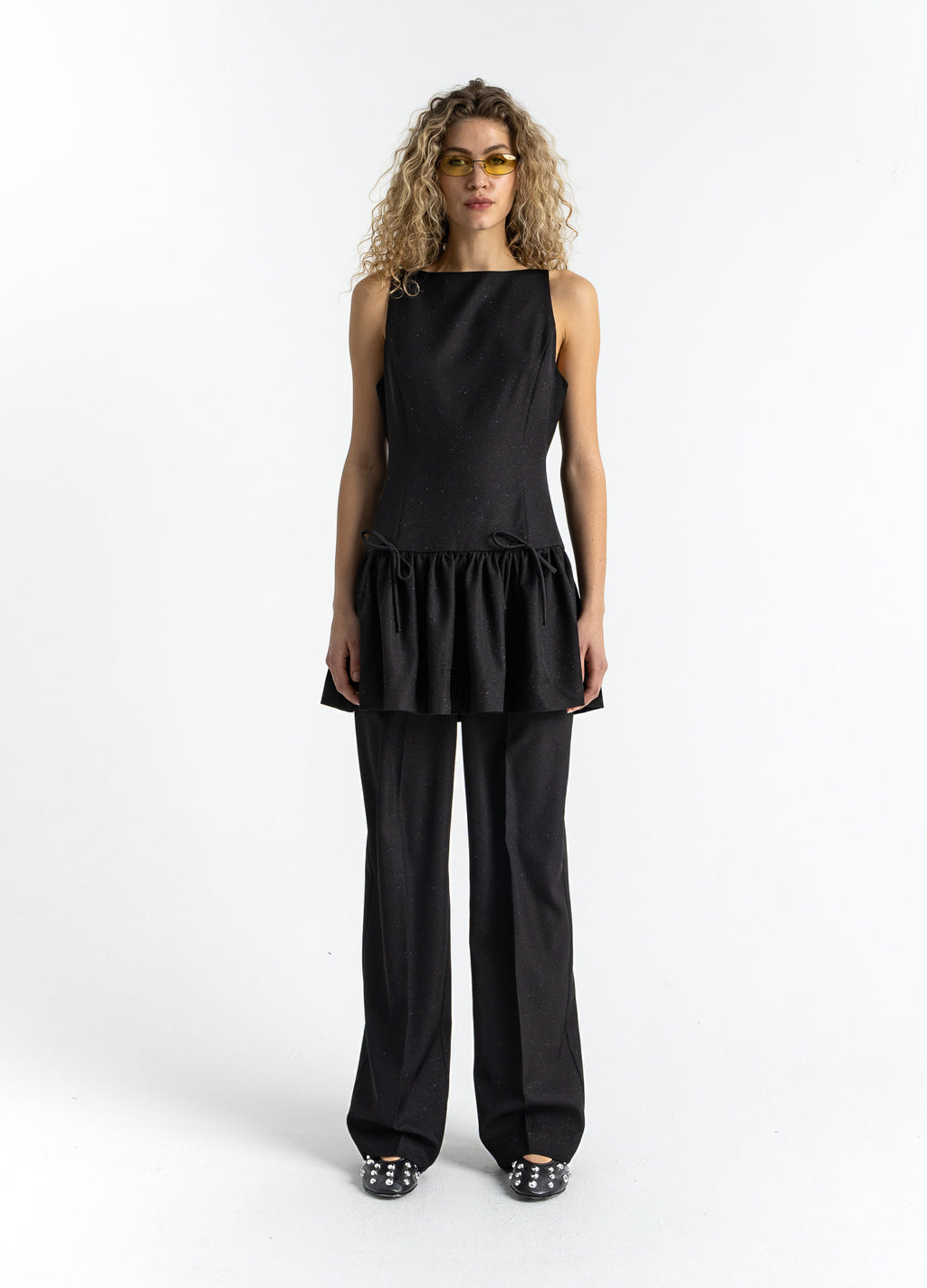 The model is 182 cm tall and wears size S. Her bust measures 82 cm, waist 61 cm, and hips 93 cm.