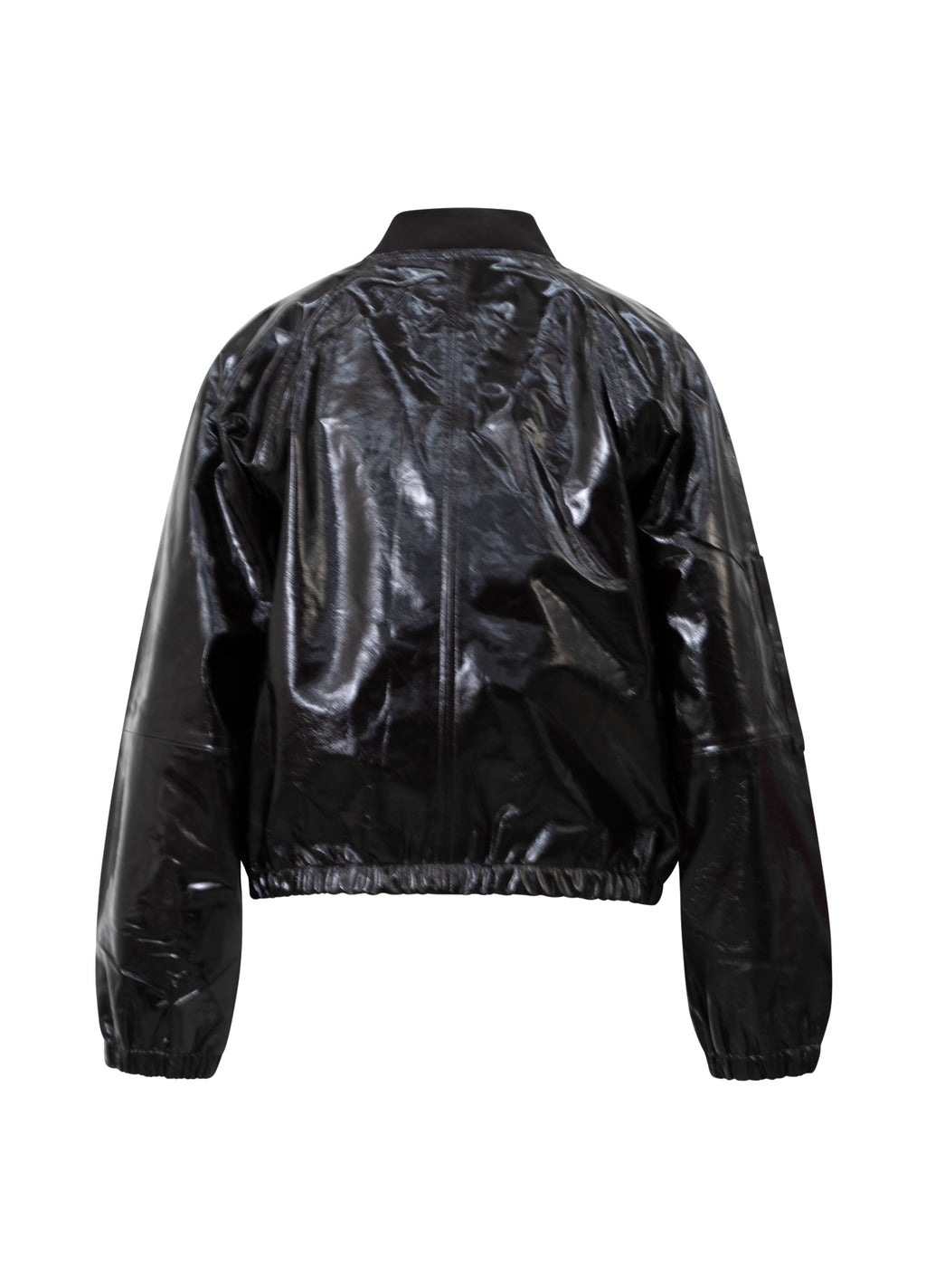 This chic leather bomber jacket adds an urban touch to any outfit. The glossy leather and fine details, such as gold-colored zippers, provide a luxurious touch.