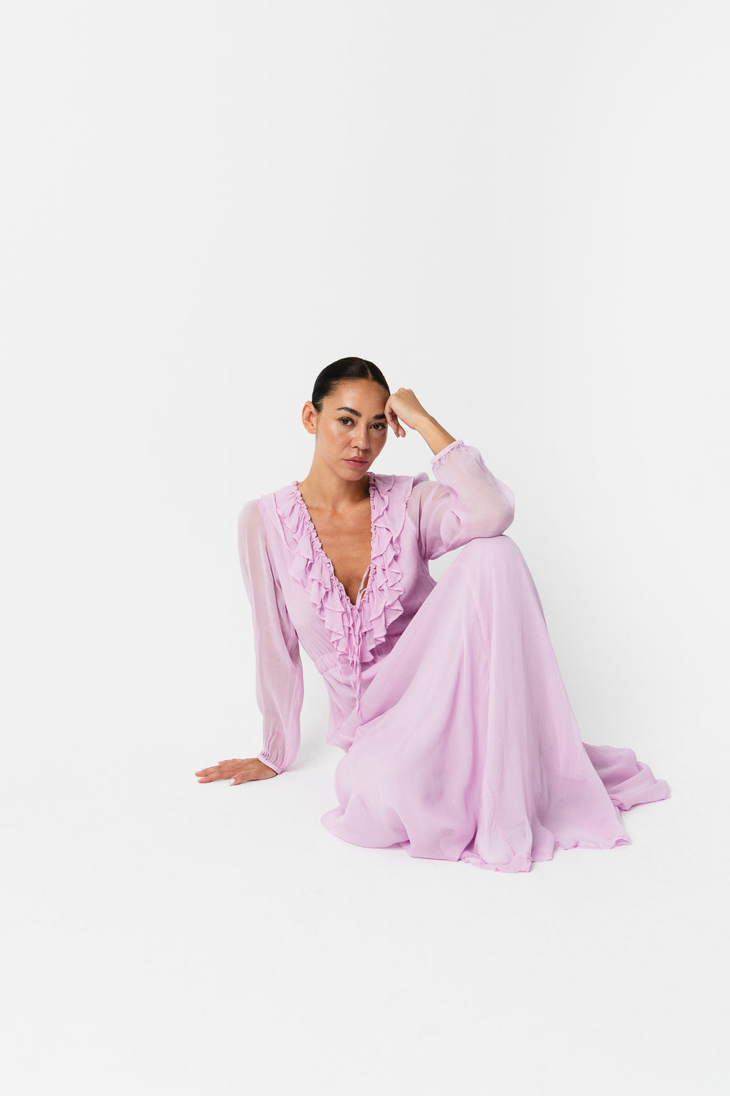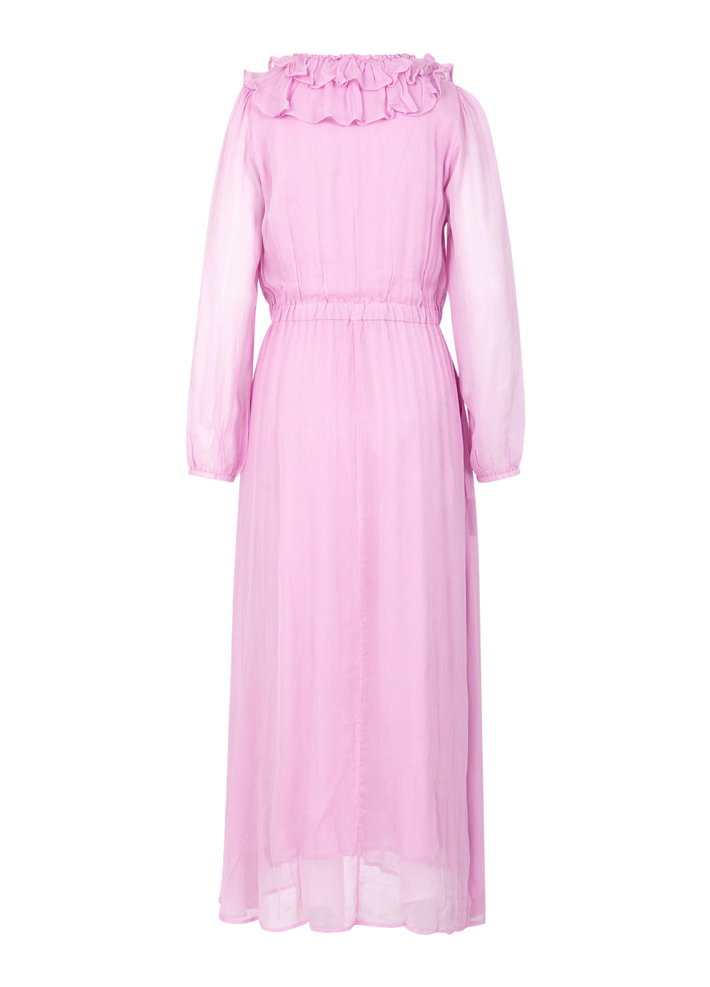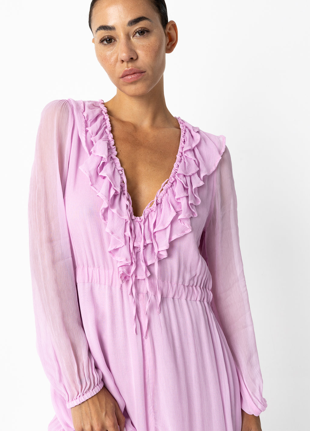 The model is 173 cm tall and wears size S. She measures 84 cm around the chest, 65 cm around the waist, and 96 cm around the hips.