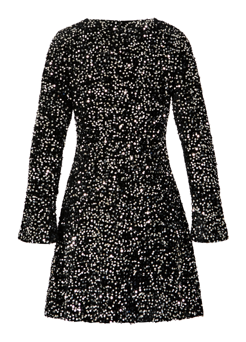 The model is 182 cm tall and wears size S. Her bust measures 82 cm, waist 61 cm, and hips 93 cm.