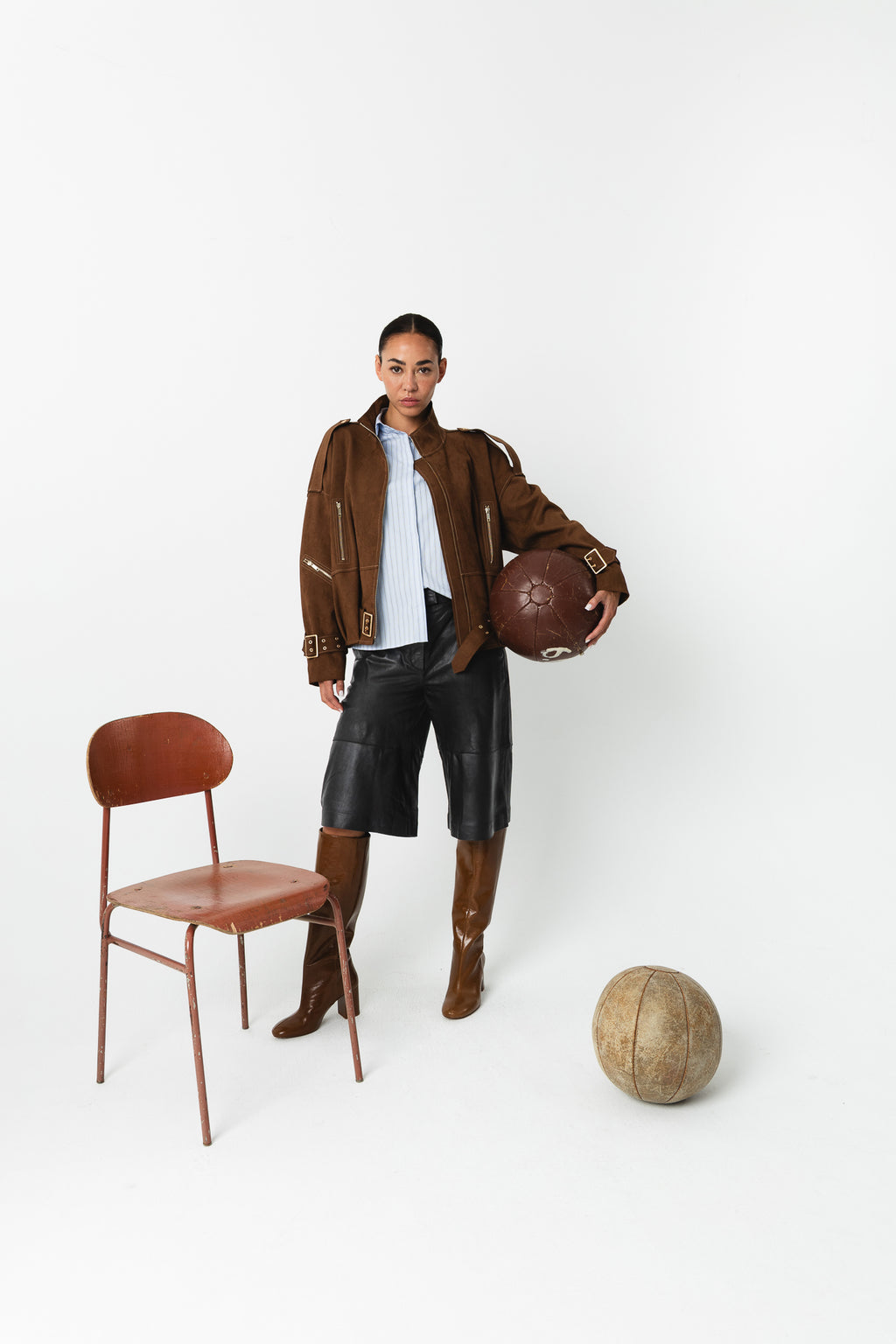 - Loose fit faux suede jacket