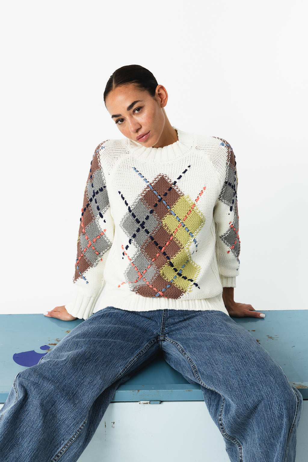 SWEATER WITH ARGYLE PRINT