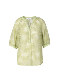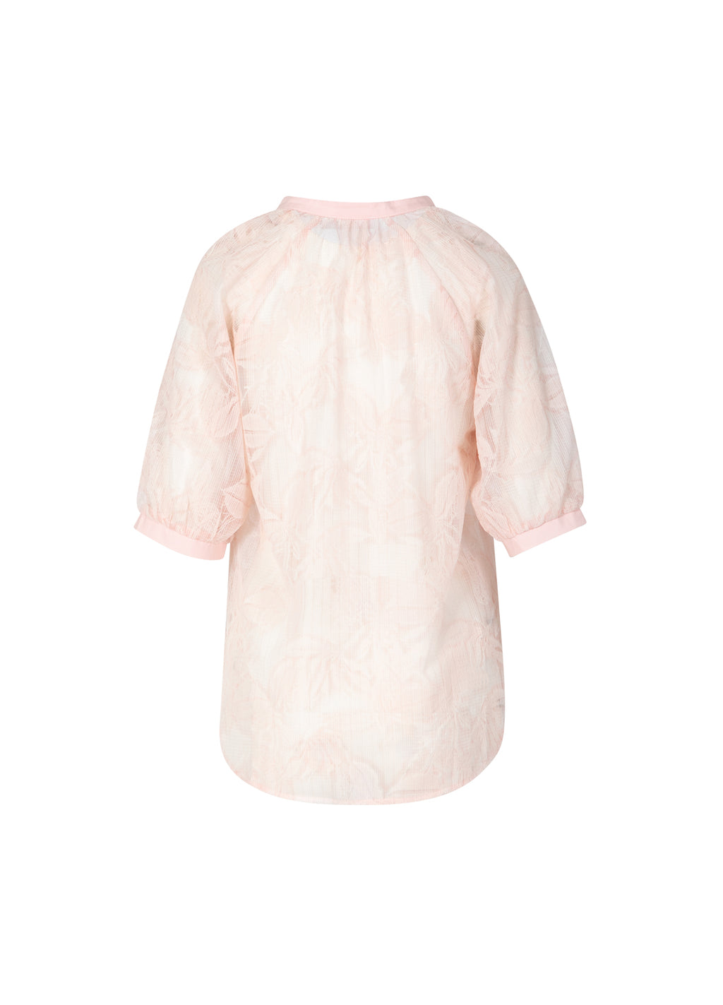 The model is 173 cm tall and wears size S. She measures 84 cm around the chest, 65 cm around the waist, and 96 cm around the hips.